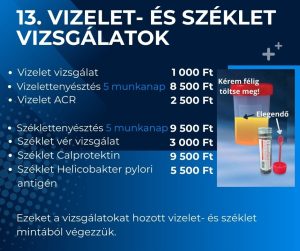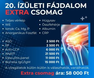 Amennyiben csak kiegészítő vizsgálatokat szeretne és a kiválasztott vizsgálatok összege nem éri el az 5 000 Ft-ot, akkor plusz 1 000 Ft adminisztrációs díj kerül felszámításra.