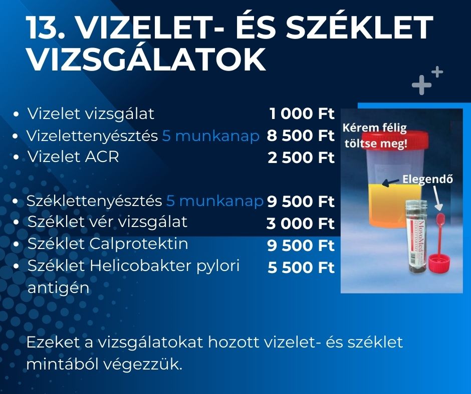 Amennyiben csak kiegészítő vizsgálatokat szeretne és a kiválasztott vizsgálatok összege nem éri el az 5 000 Ft-ot, akkor plusz 1 000 Ft adminisztrációs díj kerül felszámításra.